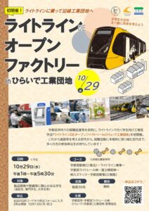 2025年10月29日(水)に「ライトライン DE オープンファクトリー in ひらいで工業団地」が開催されます。