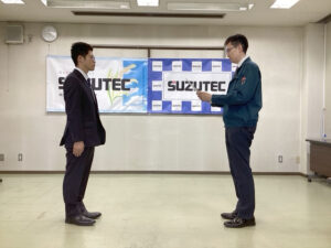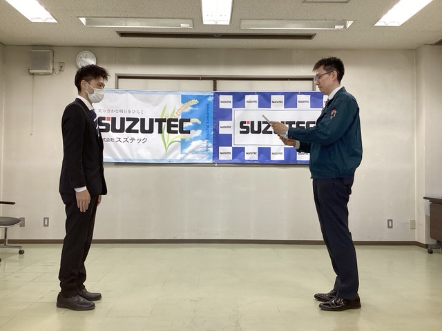 鈴木社長より内定通知書が授与され、その後若手社員との懇談会が開催されました。