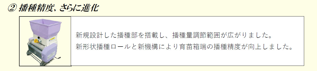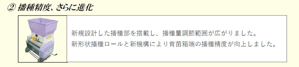 | ホッパー容量 | 播種:28ℓ 床土/覆土:47ℓ |